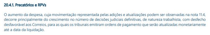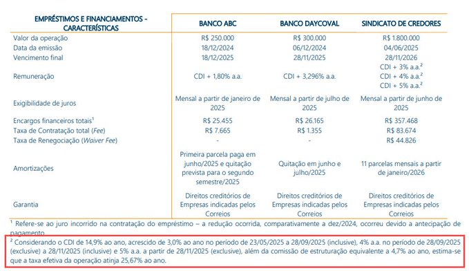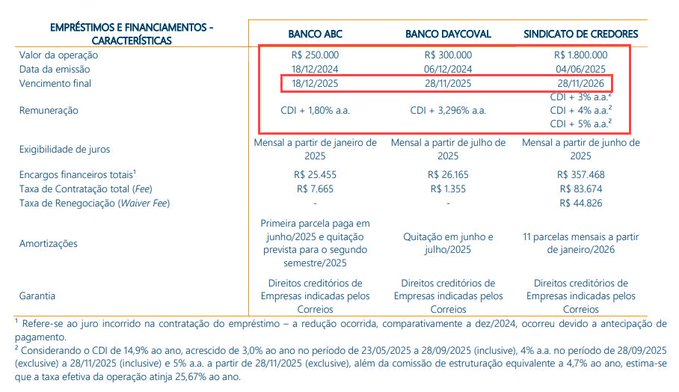Aqui a tabela dos empréstimos atuais no balanço do Correios.