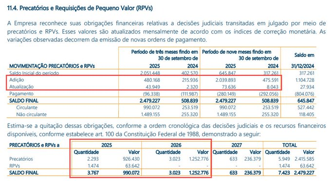 Conforme estimativa do próprio Correios, em 2025 haverá o pagamento de R$ 990 milhões em precatórios e RPVs.