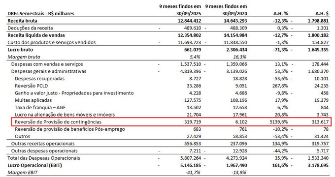 Lembrando: este impacto começou a aparecer de forma mais acentuada já no 1o trimestre de 2025.