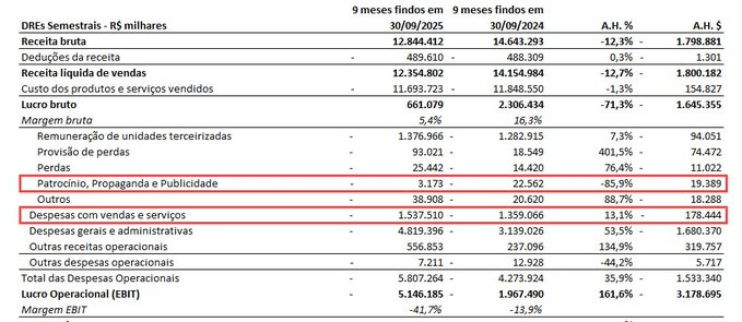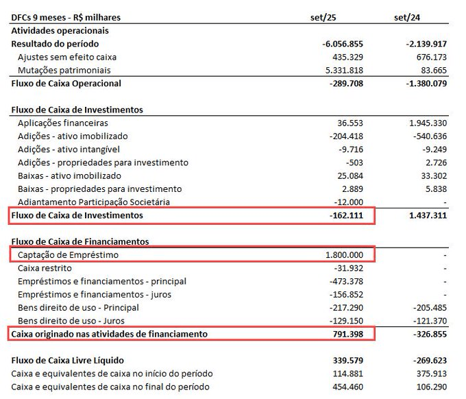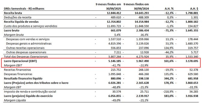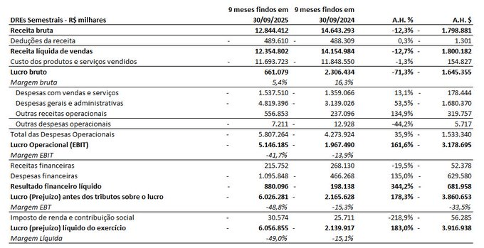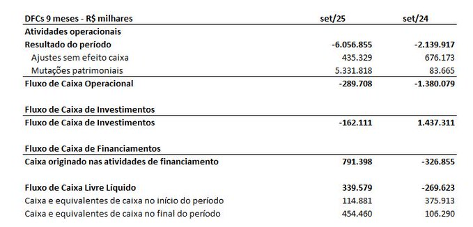 De 2023 a 09/2025, o prejuízo acumulado é R$ 9,3 bilhões.