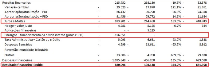 Juros e Multas tiveram um acréscimo de R$ 448,7 milhões entre períodos – sintoma claro da deterioração financeira dos Correios.
