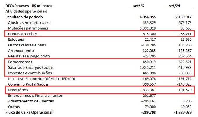 Na semana passada saiu o resultado do Correios até setembro de 2025, e para surpresa de zero pessoas veio um prejuízo gigantesco: