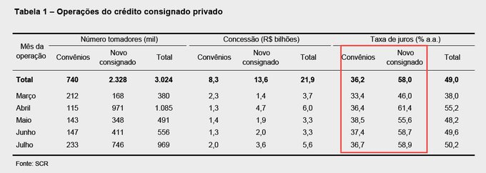 Por outro lado, a taxa de juros do novo consignado é bem superior à taxa de juros dos convênios.