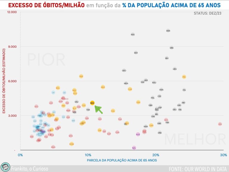 De modo geral, quando se compara o impacto da pandemia nos países, é mostrada uma lista ou um gráfico com os óbitos por Covid/100.000 ou milhão de habitantes - no...