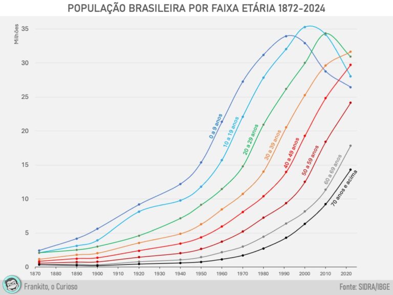 Histórico da população brasileira por faixa etária