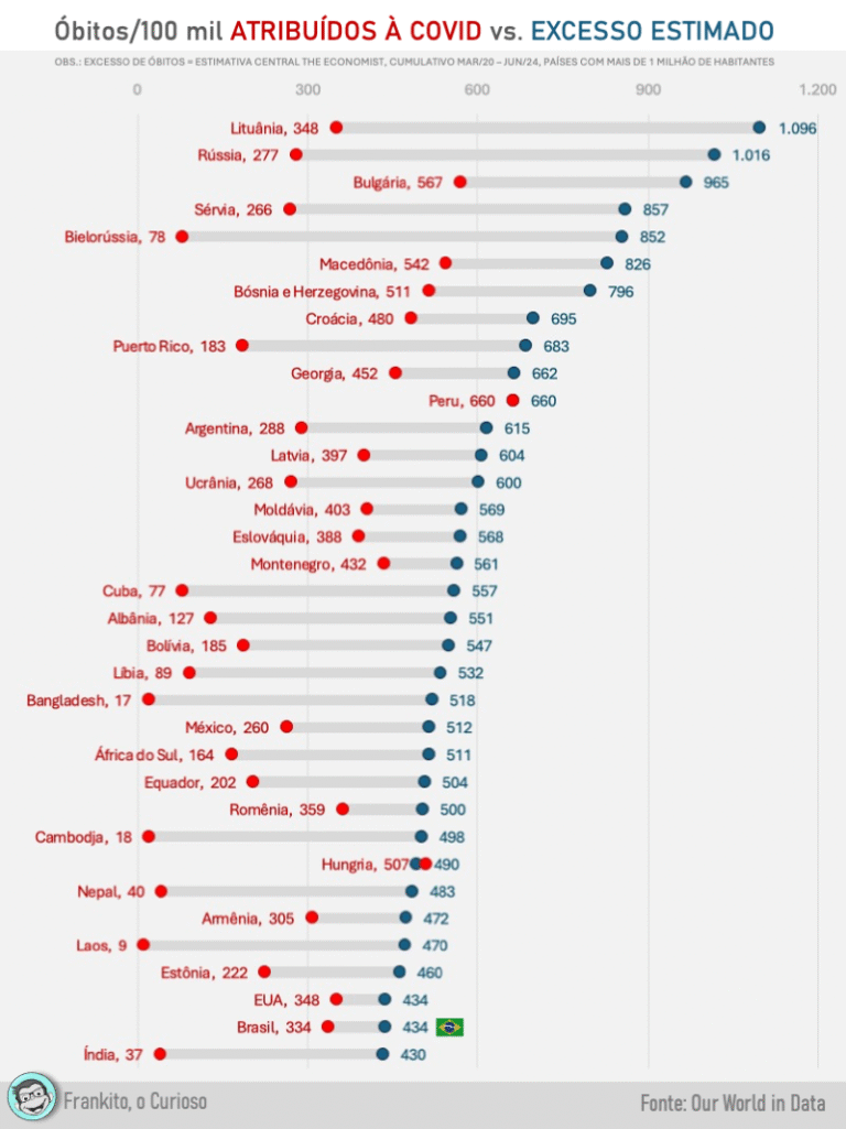 Países que lideraram o excesso de óbitos na pandemia