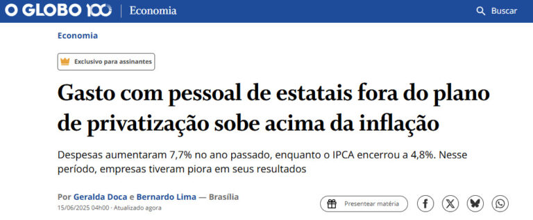 O relatório abaixo é o que serviu de base para a matéria do jornal O Globo sobre os resultados das estatais em 2024. Como o relatório é longo (38 páginas...