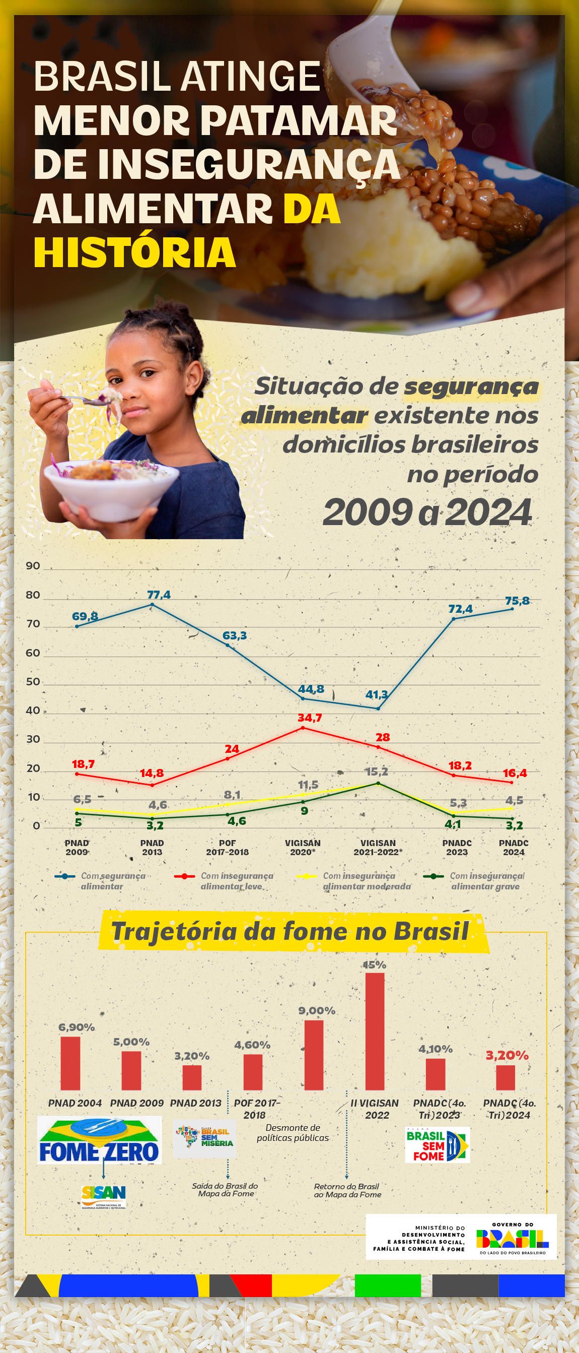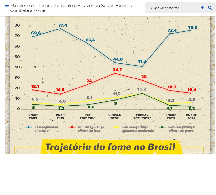 Recentemente, o Ministério de Desenvolvimento Social publicou uma matéria comemorando a queda na fome – usando o infográfico abaixo para ilustrar.