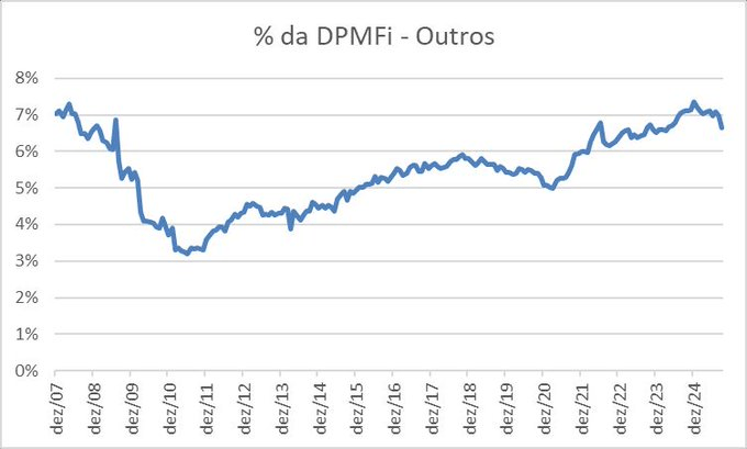 A conta Outros, que detêm 6,7% da DPMFi, é a que inclui, entre outras coisas, o programa Tesouro Direto.